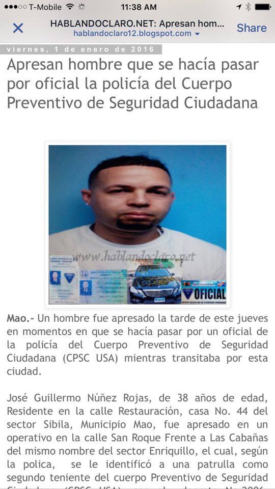 Como muestra una carta que enviara dicha institución al medio digital hermano; HablandoClaro.Net, donde se publicó la noticia del apresamiento en Mao de José Guillermo por supuestamente hacerse pasar de miembro del Cuerpo Preventivo de Seguridad Ciudadana.