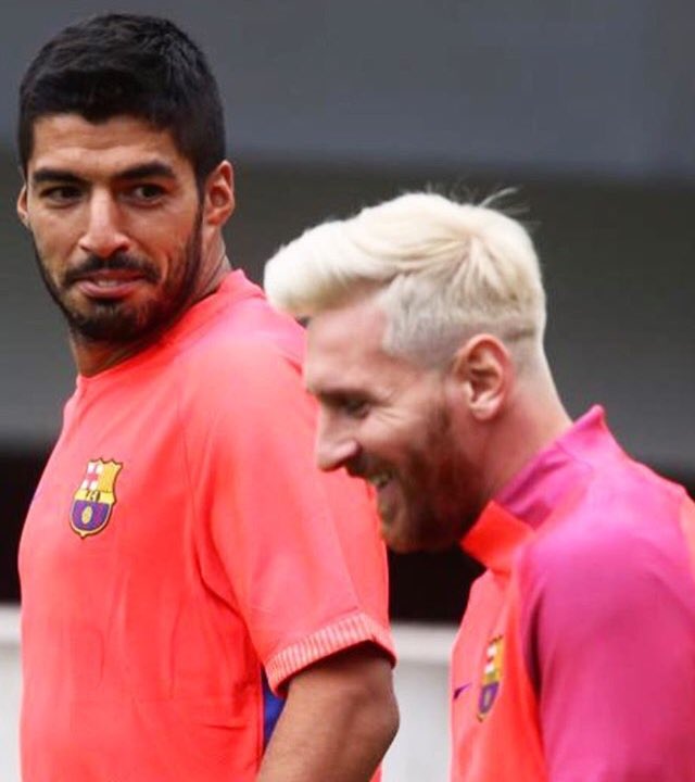 Messi, de buen ánimo y con su cabello platinado, viajó en el vuelo desde Barcelona sentado junto al delantero Luis Suárez, uno de sus mejores amigos en el plantel. Durante el entrenamiento, también estuvo pegado al uruguayo.