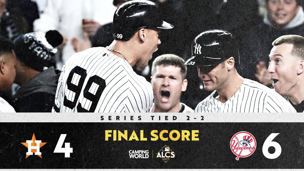 Aaron Judge ties it up with a double off the wall. https://t.co/TC8x6BWJKf