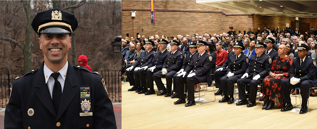 Estuvo acompañado por su esposa, hijos y otros familiares, mientras el alcalde felicitaba a los ascendidos y resaltaba su labor en hacer de Nueva York, la ciudad más segura desde los años cincuenta.