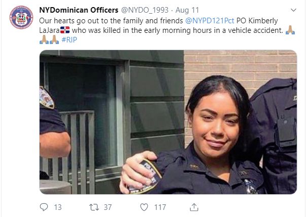En su cuenta twitter, la Organización de Policías dominicanos de Nueva York (NYDO), lamentó la tragedia y puso una banderita dominicana al lado del apellido de Lajara.