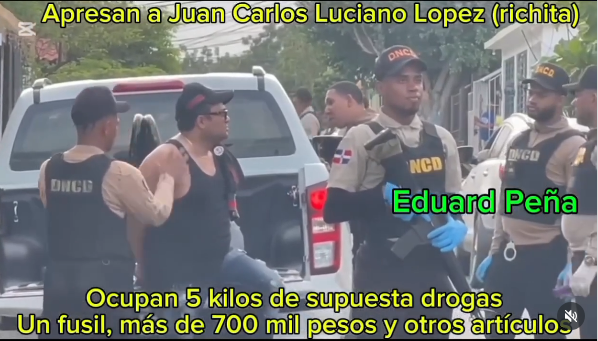 Juan Carlos Luciano López (Richita) fue arrestado infraganti durante los allanamientos practicados en viviendas de su propiedad, donde se ocupó 5.565 kilogramos de un polvo, presumiblemente cocaína, un fusil Anderson AM15 con 16 cápsulas y su cargador, así como más de 700 mil pesos y diferentes herramientas que se utilizan para el procesamiento de droga.