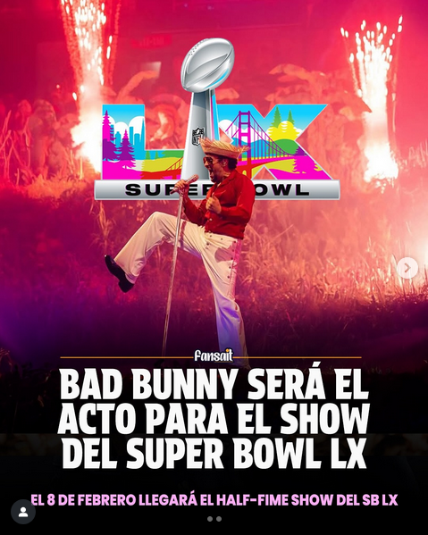 “Lo que siento va más allá de mí mismo”, dijo Bad Bunny en un comunicado sobre la noticia. “Es por aquellos que vinieron antes que yo y recorrieron incontables yardas para que yo pudiera entrar y anotar un touchdown… esto es por mi gente, mi cultura y nuestra historia. Ve y dile a tu abuela, ¡que seremos el HALFTIME SHOW DEL SUPER BOWL!”